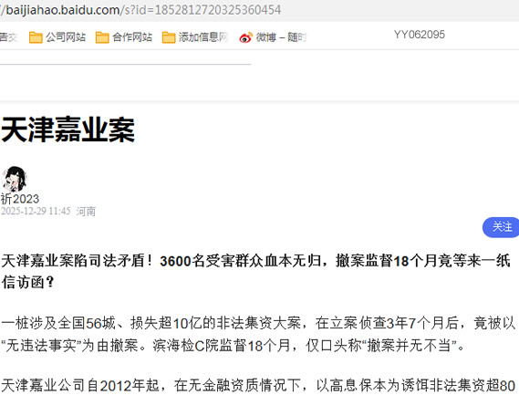 天津嘉业案陷司法矛盾!3600名受害群众血本无归,撤案监督18个月竟等来一纸信访函?